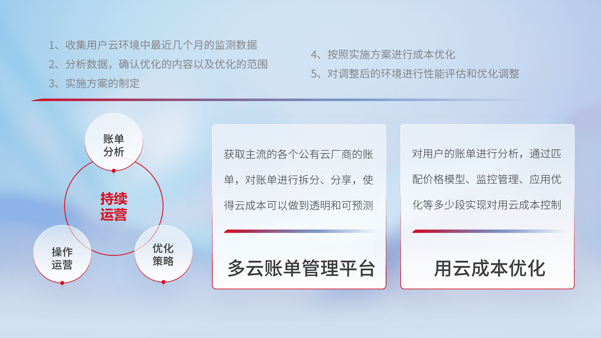 运用智能化工具分析云资源,,,提供日常费用可视化工具,,,自动账单拆分,,,成本优化云上费用,,,,降本增效。。